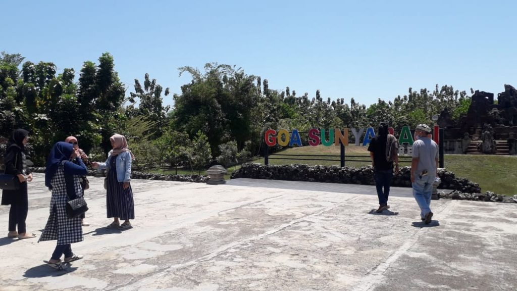 Wisatawan lokal tetap nampak di tengah kondisi pandemi Corona saat ini. dengan protokoler yang ada, masih nampak terlihat, beberapa pengunjung di areal cagar budaya, siang itu. Sekeluarga bapak, ibu dan dua anak tampak menyusur jembatan melintas parit. Dua perempuan muda berteduh di bawah bangunan pendopo besar. Sepasang lelaki-perempuan asyik berfoto di antara candi.