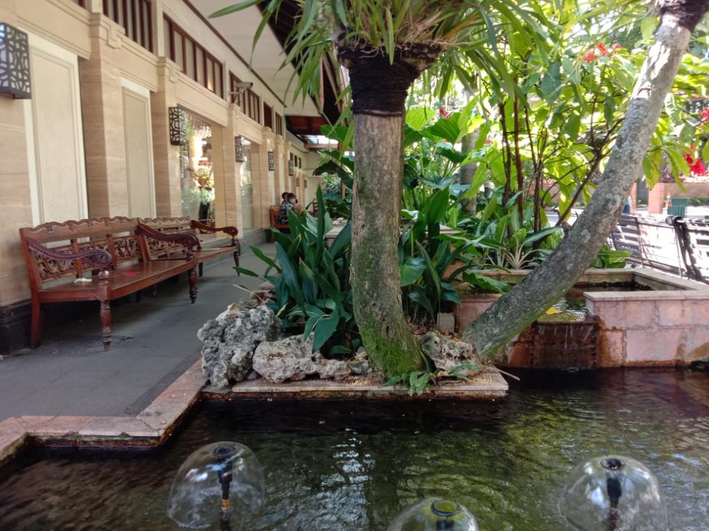 Di area yang sangat indah suasana outdoornya ini, para pengunjung baik anak-anak mau pun keluarga seakan dimanjakan dengan suasana pekarangannya. Tempat yang sangat luas. Ada taman indah dengan bangku panjang yang berjejer. Kolam luas dan air yang jernih berisikan banyak ikan koi. Rumah khas pendopo tradisi, berjejer juga kursi untuk para pengunjung sehingga dapat memilih posisi tempat duduk. Bahkan ada tempat duduk marmer terbuat dari kayu fosil membatu.
